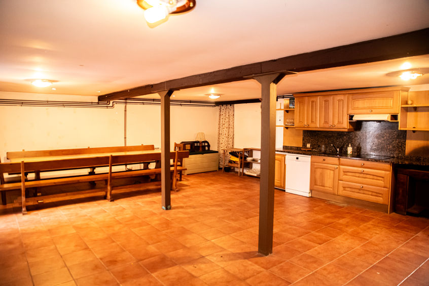 -Planta subterránea con zona de estar y cocina, perfecta para reuniones o como espacio adicional